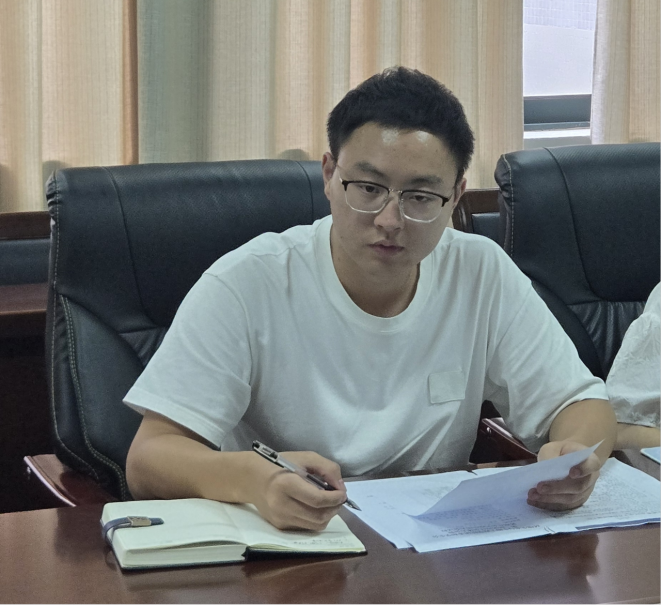 学院团委副书记(学生)金承恩领学习近平总书记重要文章《弘扬伟大抗战精神,向着中华民族伟大复兴的光辉彼岸奋勇前进》。他带领回顾伟大抗战精神的深刻内涵,强调新时代青年应从抗战历史中汲取奋进力量,将个人理想与民族复兴紧密相连,为在场师生筑牢了理想信念根基。赵偲璇领学共青团中央调研湖北共青团和青少年工作的相关要求。她详细解读了调研中对高校共青团工作的具体部署,包括强化思想引领、丰富实践载体、服务青年成长等方面内容,引导学生骨干明确工作方向,要求大家结合学院实际,将调研要求落实到团学工作的每一个环节,切实提升共青团组织的凝聚力和战斗力。