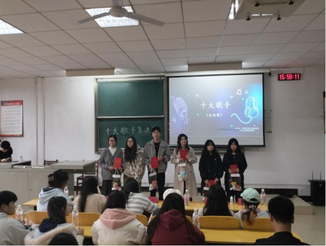 本次比赛分复赛和决赛两轮进行。经过初赛的激烈角逐,共10组选手顺利进入复赛。第一轮比赛现场氛围感拉满,10组选手依次登台,用极具感染力的演唱为现场师生带来了一场精彩纷呈的视听盛宴。其中,孙毅玲、戴静文带来的《踮起脚尖爱》婉转悠扬、李双润的《手写的从前》余韵悠长、李卓莹的《陪你长大》温情脉脉、杨浩燃的《动物世界》张力十足、秦雄演唱的《小胡同》细腻深沉、兰飞扬的《路过人间》情真意切、何颖、刘洋、陈美玲三位同学合作的《生活倒影》直击人心、刘雨青的《鹿 be free》声动梁尘、徐静茹的《有一种悲伤》深情缱绻、杨燕萍同学带来的《my heart will go on》空灵悠扬,展现出扎实的演唱功底。选手们在音准把控、情感表达与舞台表现上尽显环生学子的风采与功底,经过激烈角逐,五组选手凭借出色的综合表现脱颖而出,成功拿到决赛入场券。