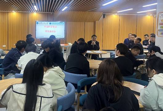 活动中,中科院“有关人才计划”李思悦教授结合自身指导竞赛经验,从选题策略、团队协作、项目打磨等方面给予具体建议,鼓励学生以赛促学、提升综合能力。教研室主任薛建涛详细介绍专业研究方向,结合前沿热点讲解了科研项目的开展情况与前景,激发学生科研兴趣。教研室副主任袁丹妮结合环保行业发展趋势与往届就业数据,梳理了环保企业、事业单位、考研深造等多元就业方向,为学生提供了清晰的职业发展路径。互动环节中,学生围绕学科竞赛与就业前景踊跃提问。