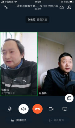 胡国元教授和肖春桥教授发言说,疫情期间,身在外地,克服重重困难,停课不停学,积极上网课,与学生主动交流,做好心理疏导,积极参加抗疫斗争,发挥党员模范带头作用。